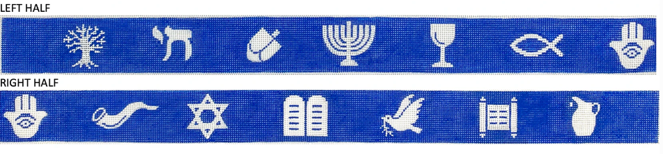 Belt - Jewish Symbols - white on bright blue, 18ct., 1.5x35.5