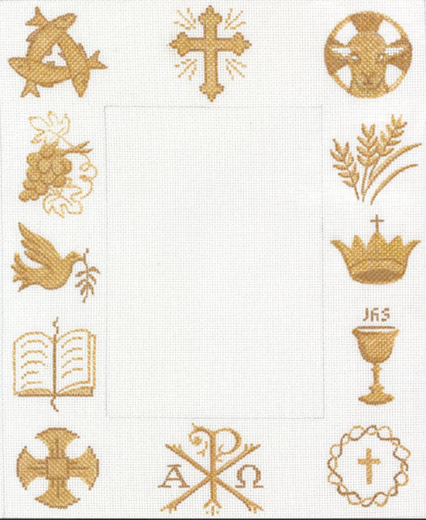 Frame - Christian Symbols - golds on white, 18ct., 9x11