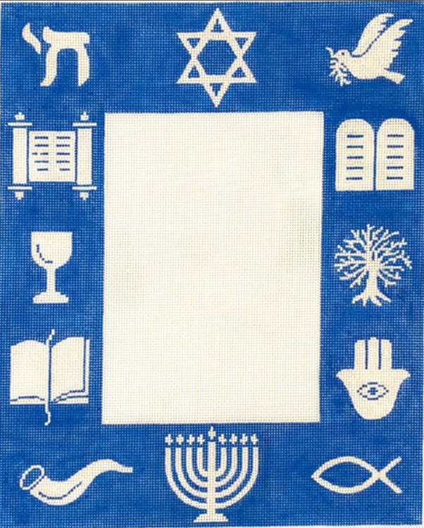 Frame - Judaic Symbols - sparkly white on bright blue , 18ct., 9x11